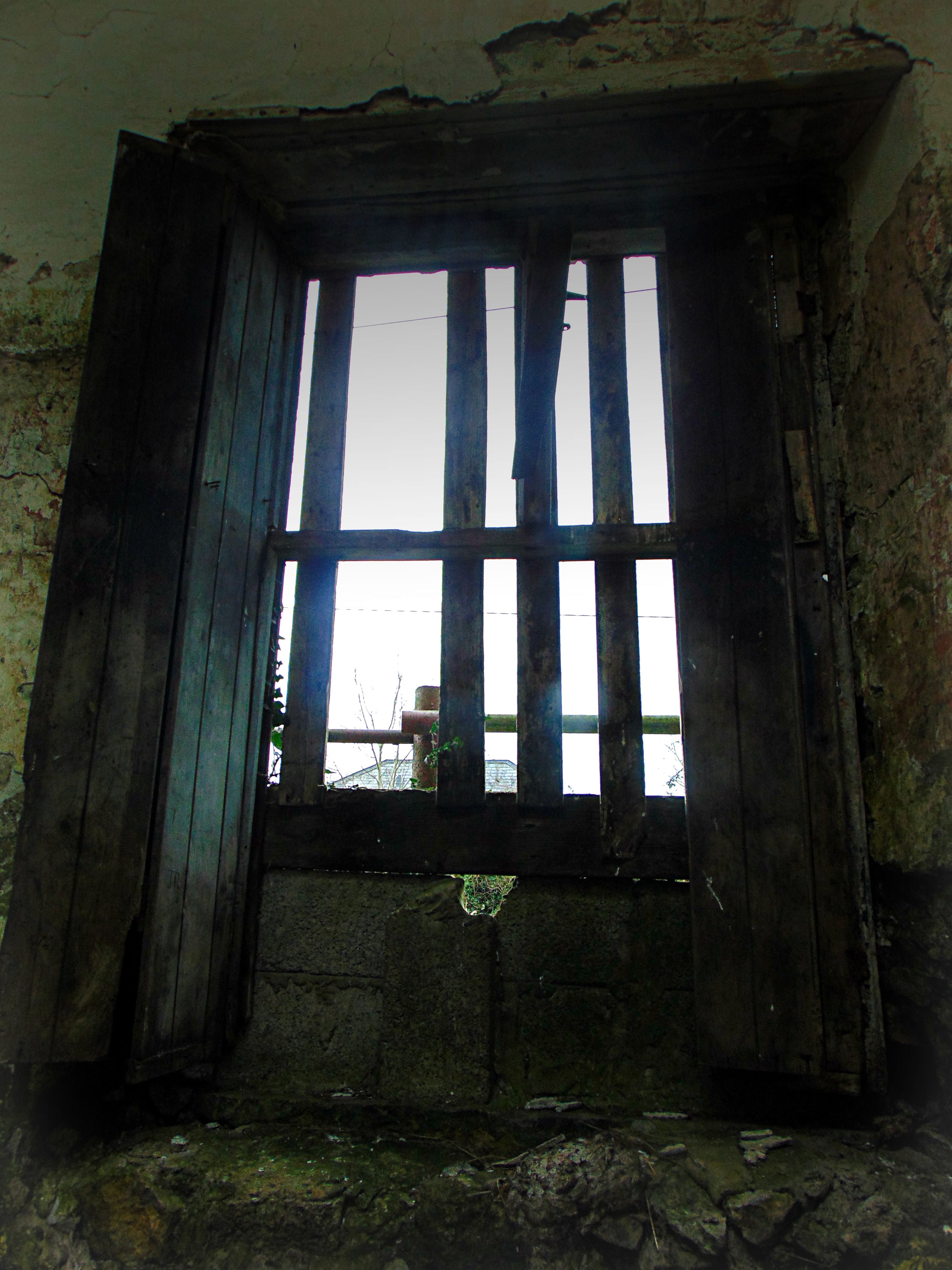 The building itself comprises a detached three-bay single-storey former school with entrance posts to east and west gable elevations. It has a pitched slate roof with red brick chimneystacks and cast-iron rainwater goods. The walls are of rubble limestone with dressed quoins. The windows are square-headed openings, now blocked, having red brick block-and-start surrounds and limestone sills. The central window of the front elevation retains it’s original internal wooden shutters: